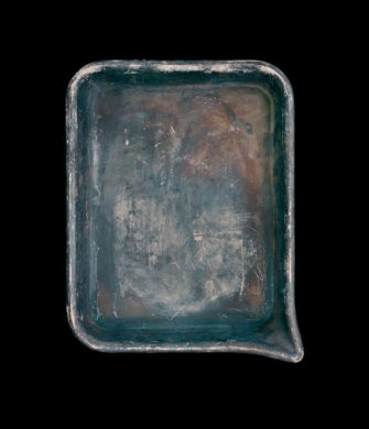 Though digital photography (whether on fancy DSLRs or iPhones with portrait mode) is inarguably king today, there are still people out there shooting film. Though not quite a relic yet, the chemical-laden process of developing and printing your own film in a darkroom is something many people may not understand or even be aware of. One of the key components of doing this is laying the soon-to-be photograph in a tray filled with developer chemicals, which steadily brings the photo to life. Artist John Cyr, a photographer and printer himself, has latched onto the developer tray as an integral object to the working photographer. His images, portraying developer trays that belonged to notable and unknown photographers alike, cast these practical objects in a light usually reserved for more “important”-seeming items. Their unique textures, stains, colors, and designs documented for posterity illuminate film development as a historically-significant art practice in itself.