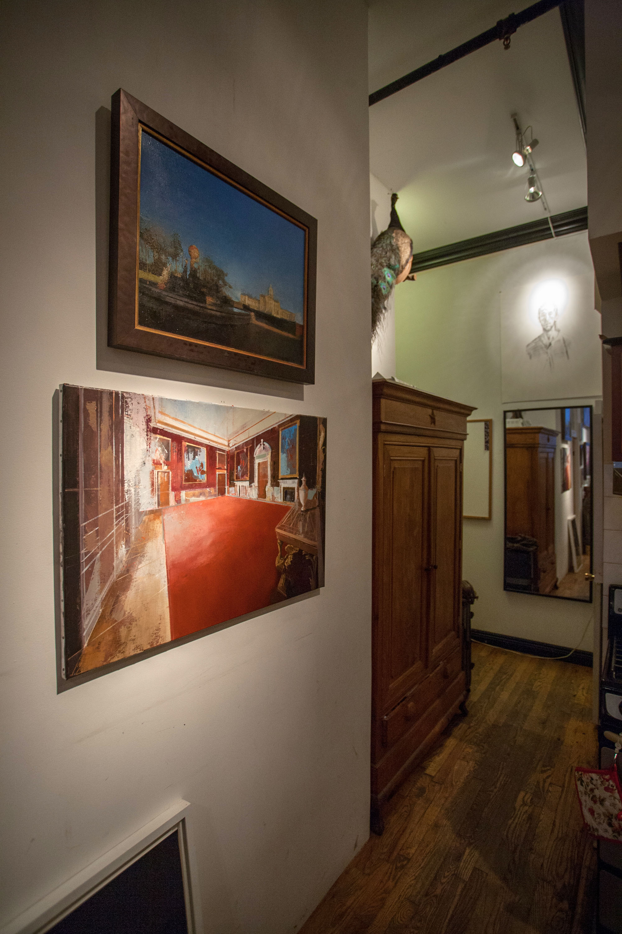 Kent’s artistic narrative has a compelling evolution. From 2005 to roughly 2007 he painted figures in spaces. Feeling the spaces were static and served only to surround their subject without adding their own value, he began to focus solely on the backgrounds. He became enamored with the geometry of old British houses he was exposed to through his graduate program at the University of Sussex and through friends of Elspeth Moncrieff of The Moncrieff-Bray Gallery, where he had a three month residency with artist Pippa Blake in 2005.
