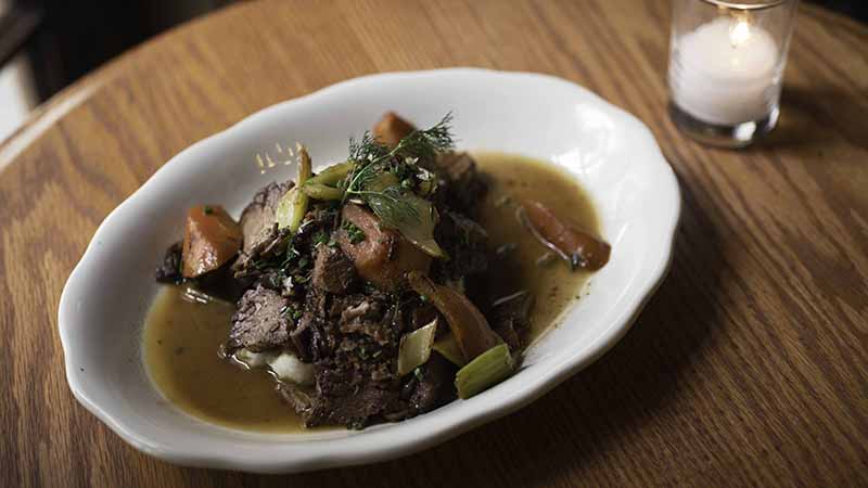 That bar — headed by Jon DeRosa, who also migrated from the Richardson — serves trustworthy cocktails, fourteen draft beers and 20 European-origin wines. And the chef, Brett Ackerman, offers up just the kind of food you’d hope to find at a tavern named after a ferry that docked nearby until 1918: fried clams, a grass-fed burger, shepherd’s pie, and similar hearty bites fit for a dock-worker are served till 2 a.m. daily. There’s also a raw bar.