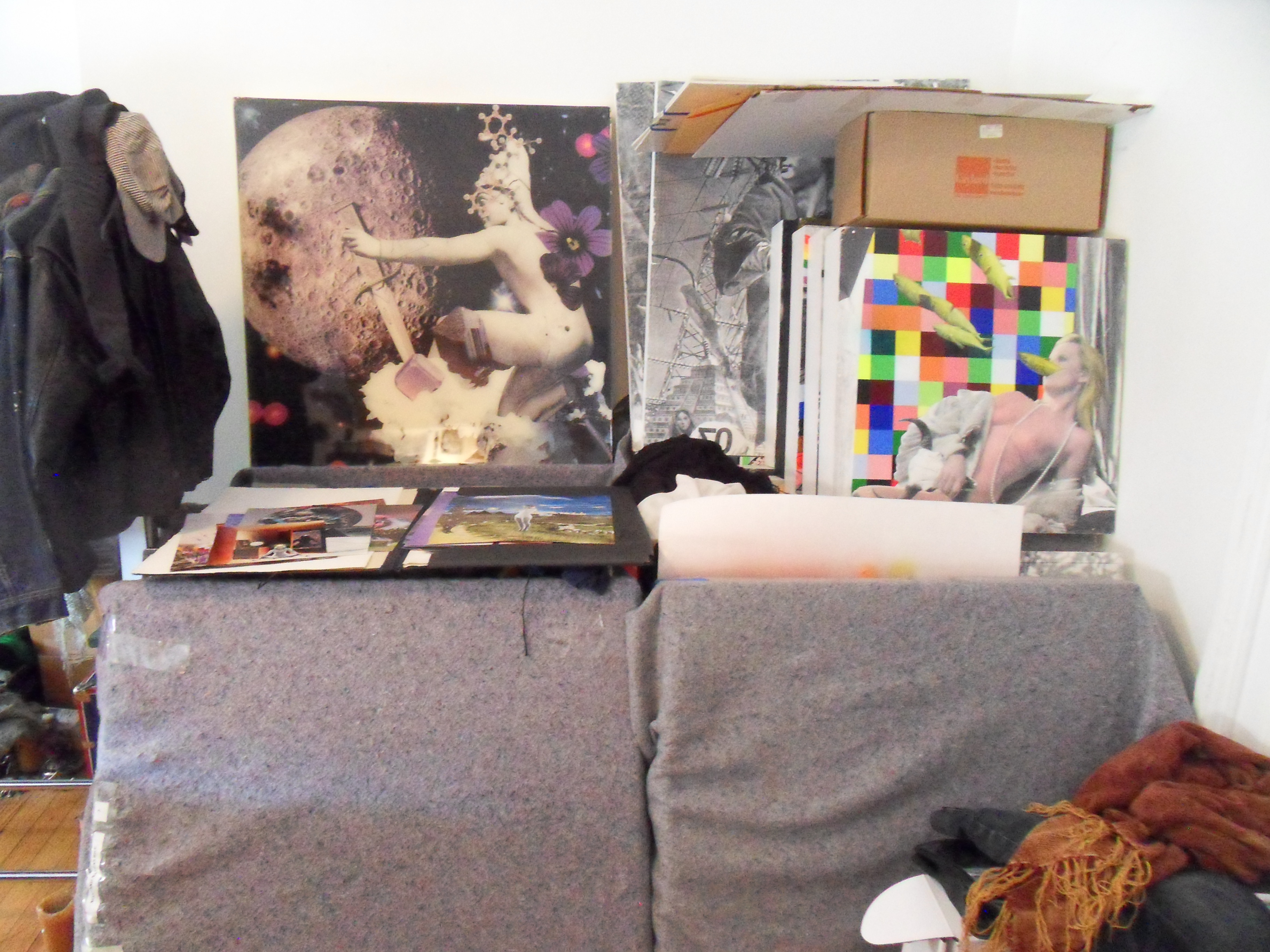 In it, pieces from the collection flicker across the screen to the chilling yet beautiful sounds of Portland-based band OXBLD. The images go back and forth between black-and-white and color, as they do in the book. “The first half of the book will be based on color themes; a bright neon feeling,” explains Nathan, “and the other half is going to be black-and-white, like old Twilight Zone. “ I met up with Nathan in the apartment that he and Noah also use as an art studio (fittingly, it’s in the same building as the East Williamsburg performance space, The Spectrum). Nathan took a few minutes off to chat with me about the mysteries of life, running from cops, and the process of collaging.