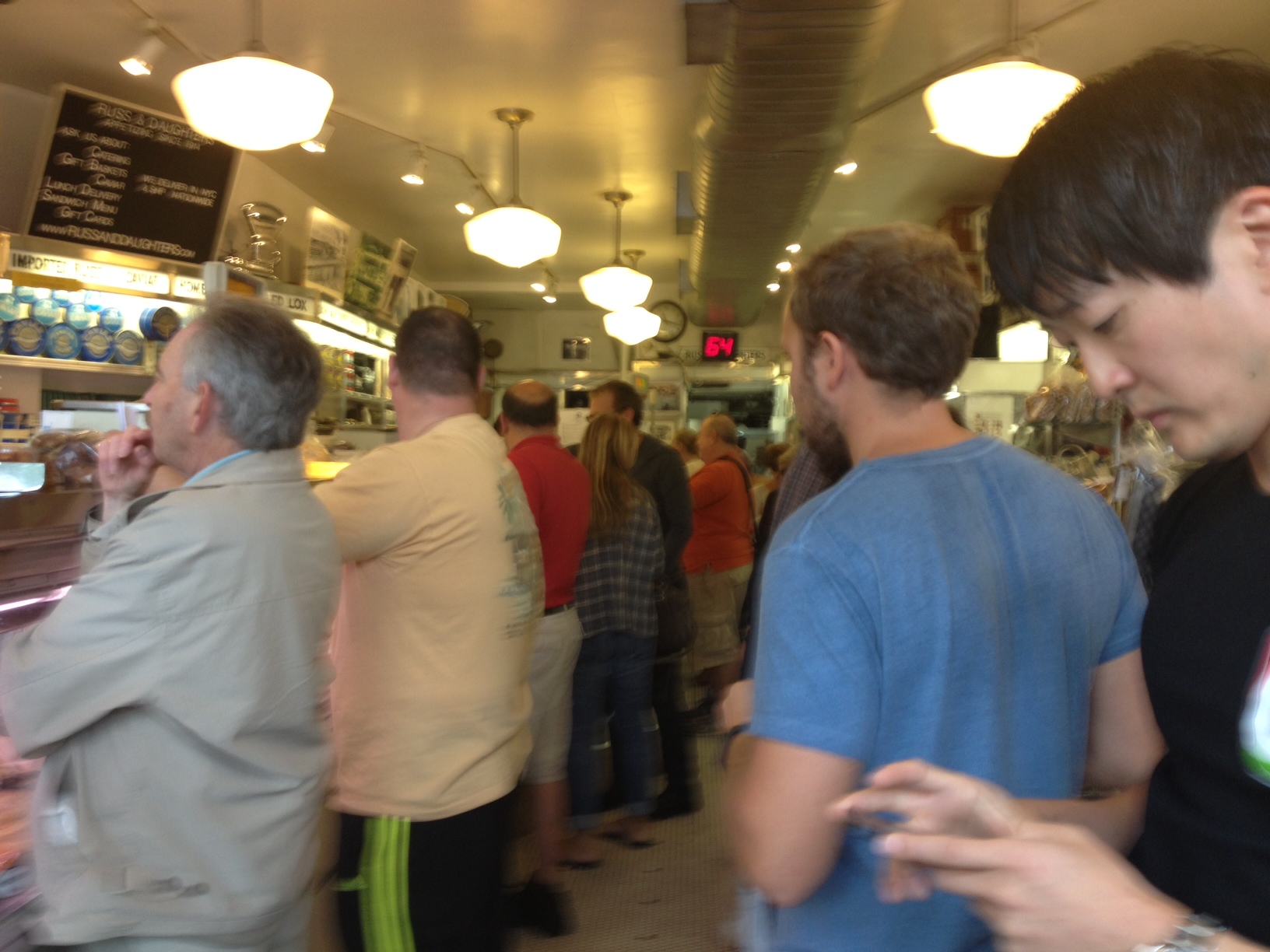 Russ & Daughters is no longer taking pre-orders for Yom Kippur appetizing, so if you’re aiming to break the fast with babka, you’re going to have to hoof it down to Houston. Just one thing: the line for lox is long. Very long. A tipster tells us the person in front of her told her the wait was four hours long, and 114 people took tickets before she took off. When we called to confirm, the following exchanged occurred.