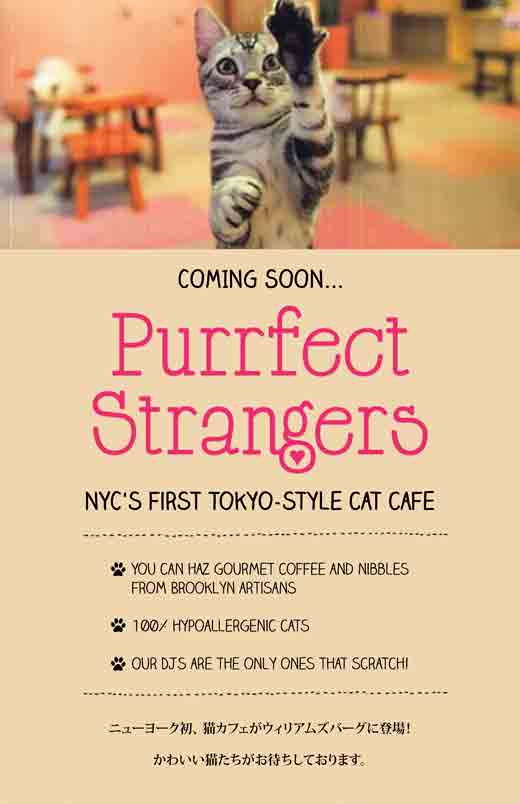 Folks, it’s time to let the cat out of the bag. That Tokyo-style cat cafe that might be coming to Williamsburg? Please don’t curl up into a ball when you hear this, but Purrfect Strangers was all just a crazy little experiment. Allow us to explain.
