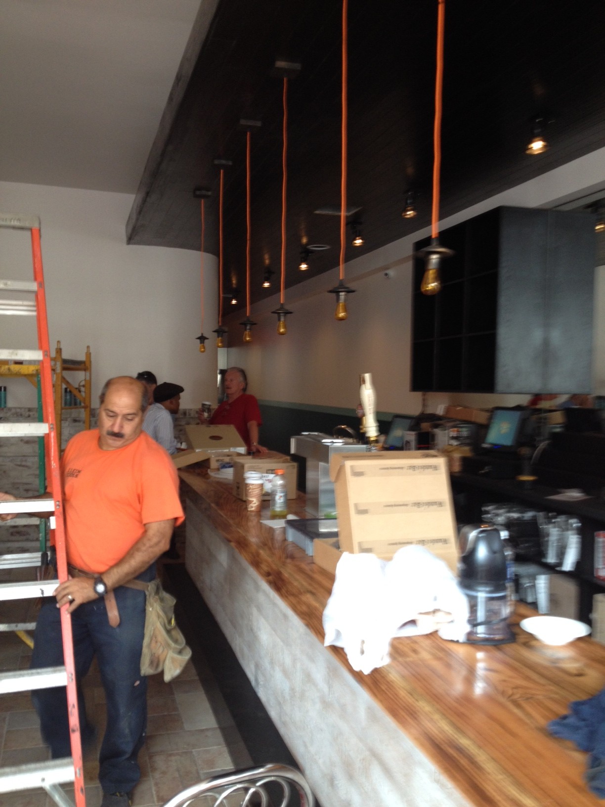 Despite the flip-flops, Chris Miles had clearly come to his restaurant to work. He wore a pair of frayed camouflage shorts and a white “Connelly’s Rockaway Beach 2013” t-shirt that was peppered with holes, slightly exposing his tan skin. As he sat in a dining room full of unwrapped furniture, contractors worked diligently, installing new lights and booths in the bar area. The room was electric with determination.