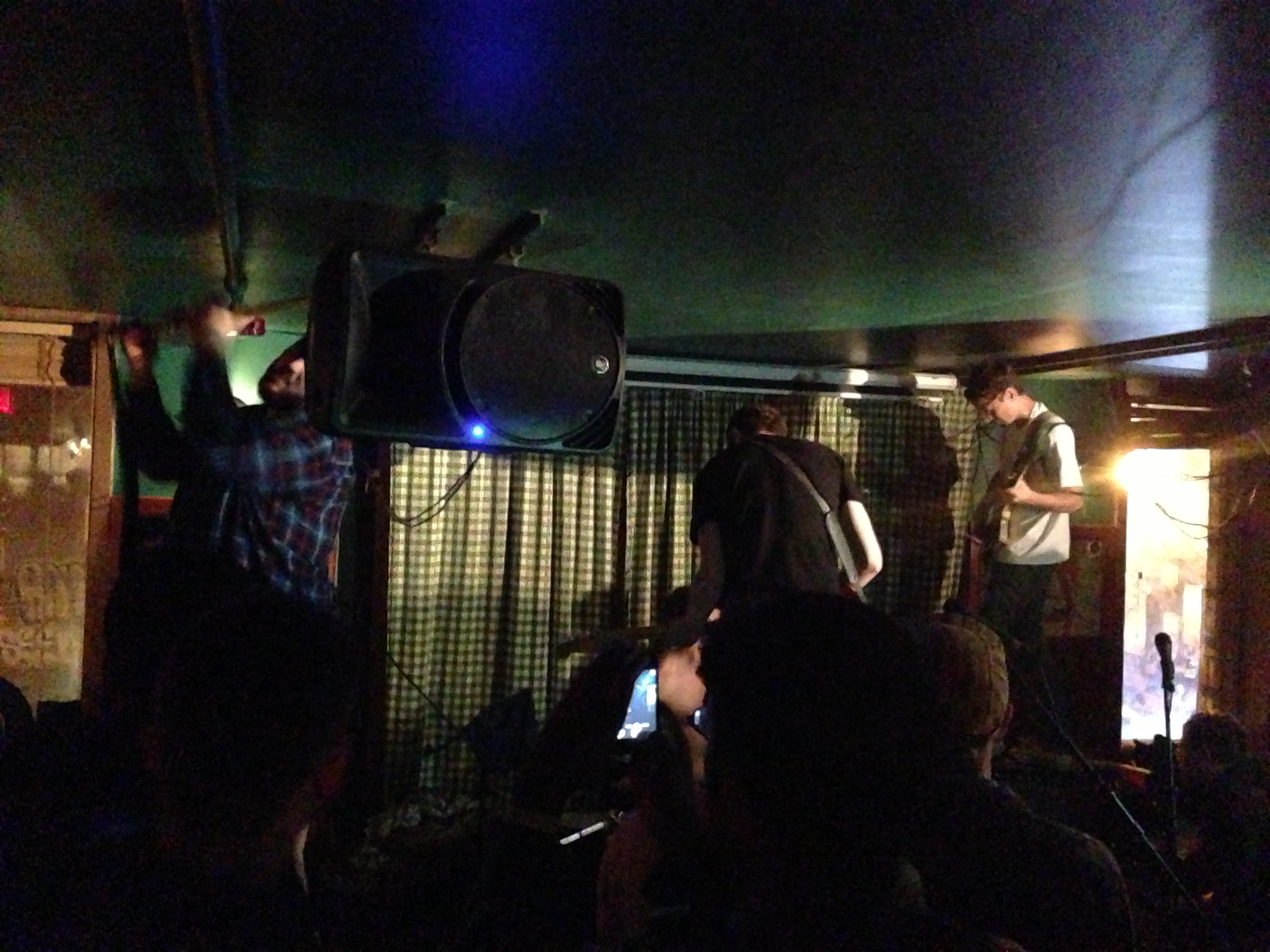 Wednesday night’s Old Flame Records showcase hosted Shark?, the Brooklyn garage rock mainstays that have treaded local waters for quite some time now. As usual, the dudes had everyone at Pianos instantly riled up, as they screeched and crunched their way through yet another thoroughly satisfying set. However, the night’s highlight didn’t arrive until Shark?’s stirring conclusion, in which bassist Andy Kinsey climbed an amp, then proceeded to fall unceremoniously onto the band’s drum kit.