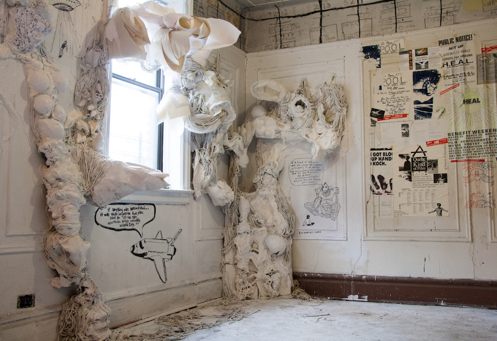 Artists from all eras of ABC No Rio’s radical history, including some who founded the legendary Lower East Side squat in 1980, have turned the dilapidated tenement into a top-to-bottom exhibition space before it’s demolished and replaced by a new eco-friendly building.
