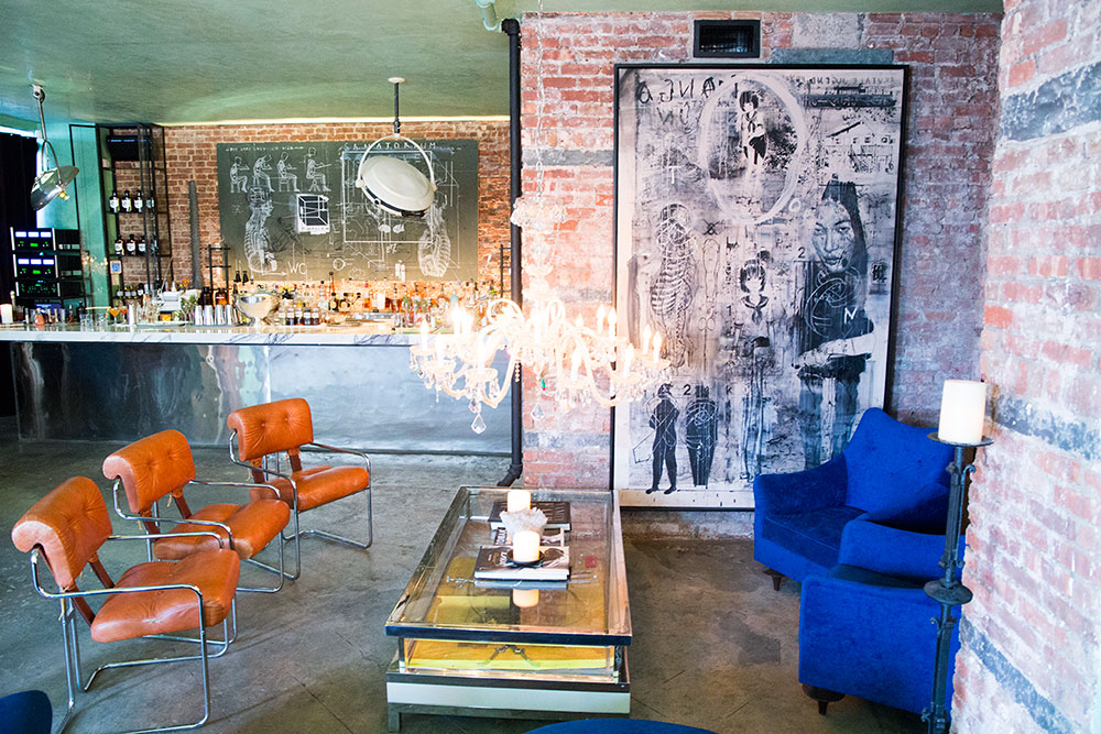 “We like to create a theme like in the 1930s institution– I wouldn’t say it’s a mental institution,” Trummer explained. Pointing to a plush couch from the restaurant Daniel and paintings commissioned from the Austrian artist Tomak, Trummer said, “This is almost like the waiting room, and then you’re allowed to see the doctors.” He giggled. “But the secret is, we tell you what you need.”