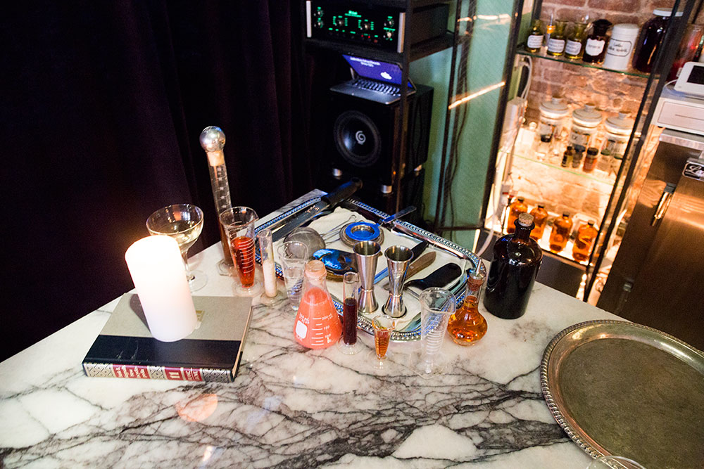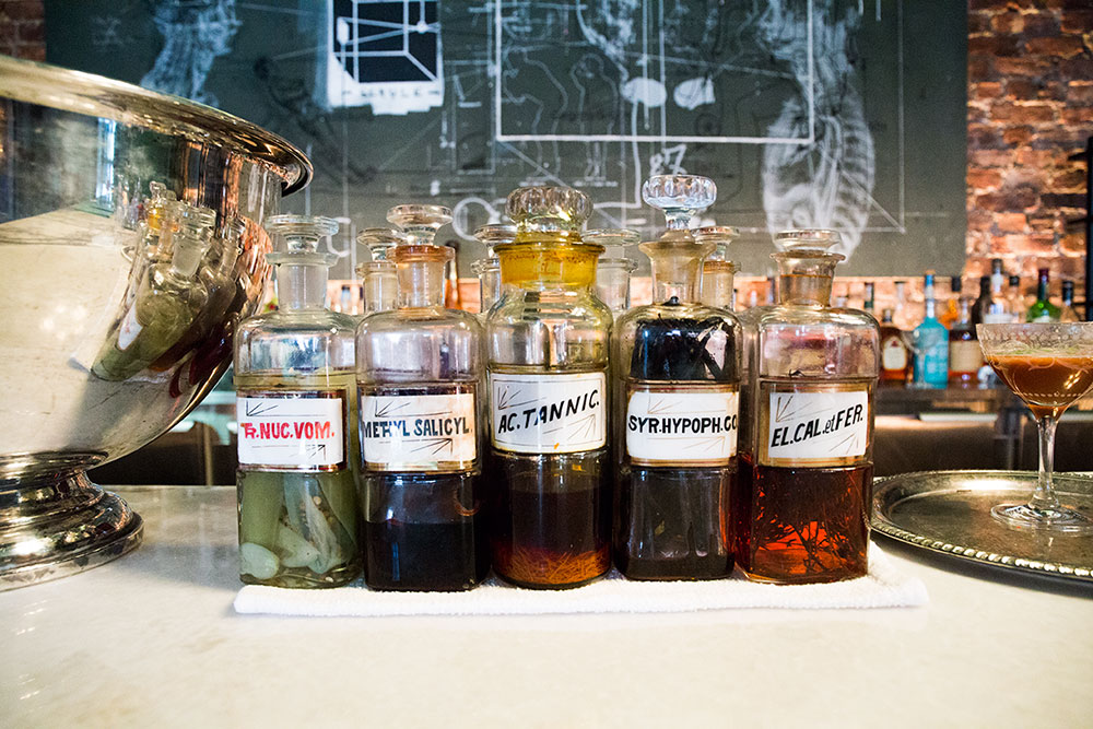 With this new bar, it’s clear Trummer is hoping to stage a comeback that involves reclaiming the pharmaceutical aesthetic of his estranged bar and slapping a medical degree on it to boot. In addition to the syringes and old-timey apothecary-style bottles, patrons will find high-concentration “elixirs,” and a surplus of bartenders on staff to ensure drinks arrive to imbibers’ lips as quickly and theatrically as possible. It’s likely they’ll also find Jakob Trummer– the owner’s 21-year-old son, who said he started training at Apothéke when he was just 14. “Illegally!” Albert laughed.