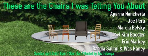 If you were wondering when you’d ever see the chairs Ana Fabrega was telling you about, this very well might be your chance. The latest edition of her Sundays With Ana comedy series is all about those chairs. You know, those chairs. The chairs I was telling you about? Yeah, those chairs. You know the ones. People who might be appearing alongside the chairs include Aparna Nancherla, Joe Pera, Marcia Belsky, Joel Kim Booster, Erin Markey, Bardia Salimi, and Wes Haney. So even if you’re feeling lukewarm about chairs, this show is certainly worth a visit.