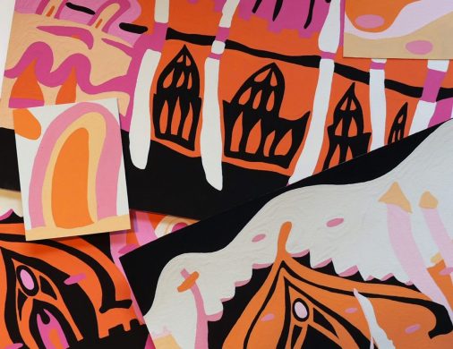 Using a color palette reminiscent of scoops of sherbet and making shapes that recall fruit, body parts, rainbows, and more, Amie Cunat’s mural for Knockdown Center breathes new life into New York City architecture. The mural takes inspiration from drawings of notable buildings like churches, layering each structure on so it recalls the squished reality of real estate in the city, but with an added dose of sugary surrealism. Every day the cityscape changes a little more, for better or for worse, and here you can see it from yet another perspective.