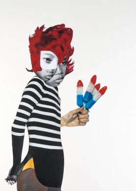 Come Thursday, a former U.S. Army fort in the Meatpacking District will become host to the work of Deborah Roberts, a Texas-based artist with a new solo show centering around colorism and beauty standards for black women. The exhibition consists of collages and painted serigraphs; the collages portray a kaleidoscopic look at the black female form, mixing color, monochrome, created and found imagery from different eras and bodies in order to subvert the notion that there is one “correct” way that a black woman should look, particularly a young black woman. Additionally, the serigraphy pieces (a technique also known as screenprinting) include “stereotypical black-sounding names” in an effort to engage with the power of labels to create preconceptions.