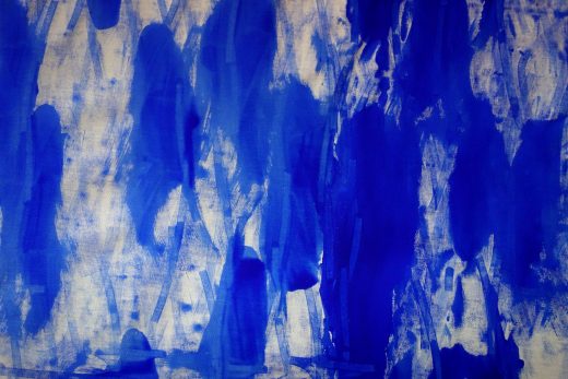 The phrase “alone together” typically calls to mind a relationship that isn’t working, or perhaps a peacefully solitary duo. However, at this solo exhibition of work by Addie Wagenknecht, the duo in question involves not two humans, but a Roomba. This small cleaning machine (created by a military defense corporation, mind you) has been co-opted to serve as an artistic collaborator and painting partner, leaving colors and lines in its wake instead of an increased sense of hygiene. In a reference to / subversion of a live painting tactic (usually spearheaded by men) involving painted nude women pressing their bodies on canvas, Wagenknecht poses nude on the canvas during the painting process, so the robot at work inadvertently leaves areas of negative space where her body once was.