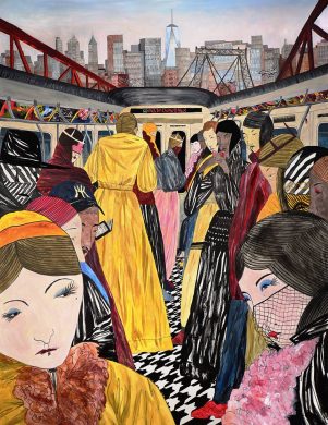 As New York City is a hub for art, it naturally attracts scores of artists from all over the world, eager to show their work to collectors and civilians alike. But Spoke Art’s latest show, curated by Jennifer Rizzo, is all about the artists that live right here. Mixing “lowbrow” and “highbrow” styles of artmaking (but with a focus on the more lowbrow, whatever that might mean to you), Meet Me At Delancey / Essex allows local artists to engage with the city itself or imagine entirely new ways of city living by way of architectural sculptures and other creations. And honestly, looking at a painting of a really crowded J train going over the Williamsburg bridge is a lot better than actually being on one. Though I recently was on a J train that was entirely empty from Flushing to Essex, and I assumed my life would casually become a horror film at any moment.