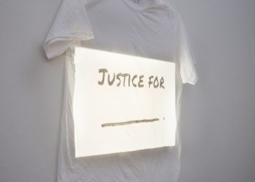 One of the pieces on view at Knockdown Center’s new group show is an image by Lachell Workman of a plain white T-shirt with a square of bright white light projected onto the front. In thick black writing, it reads “Justice for _____.” Because we know justice will always be needed for someone or something or somewhere that’s probably not getting it now and maybe never will get it adequately, the work serves as something that’s likely to be eerily, eternally relevant. “Material witness” refers to someone who has information that is useful to a criminal trial. This focus on the individual is no coincidence, as the show specifically delves into the effect trauma, systemic violence, and resistance have on the body, particularly one that lives in a society where injustice can often be caused by the very institutions that are supposed to protect. Saturday’s opening reception will also feature performances at 7 pm by Morgan Bassichis, Glory Day Loflin, and Amber Atiya.