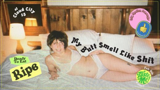 Typically, when one sees a show bearing such a title as this, they may be tempted to find some other plans for the night, or maybe an air freshener or two. Honestly, there are not many performers that make adolescent riffs about bodily functions actually fun, but Edy Modica is definitely one of the few that do. From watching her embody an alien trapped in a horrifying human flesh sac to observing her do stand-up as (and from) her own literal butt, there is rarely a dull moment with Edy. If all this sounds intriguing to you, trot on over to her one-woman show at Williamsburg’s Cloud City, full of performances, cartoons, guest stars, audience interaction, an opening set by Francesca d’Uva, and of course, butts.