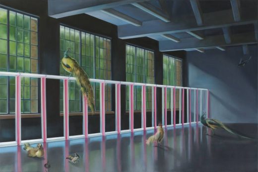 Maybe all your friends have been to Dia:Beacon, that trendy hub of Minimalist art just a hop, skip, and a jump upstate, but you haven’t made it yet. Fret not—there’s a way to experience it without figuring out how to convince your friend’s roommate to let you use their car. The art and the scenery will be rendered in paint as part of German painter Alina Grasmann’s solo exhibition at Fridman Gallery, Edge of Eden. The show has two components: large paintings of Dia:Beacon’s scenery and art with components of other notable paintings added in, and 40 small oil paintings of Agloe, a fictional New York town dreamt up to prevent map copyright that became real for a spell and then dissipated once more. Combined, the two painting series conjure a New York that’s outside the city and maybe even our reality.