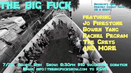You may have noticed this comedy show’s location is “a boat.” That is not a new basement bar or coyly-named DIY venue, but an actual boat. Yes, one that is meant to sail the open waters or what have you. One might ask where one finds/docks a boat in New York City. I cannot tell you, because the location is a secret (well, it’s in Bushwick, I can tell you that), to be revealed only to those who RSVP for the show. So, if you want to see Jo Firestone, Bowen Yang, Rachel Pegram, The Greys, and even more tell jokes while on a true blue boat (I don’t know if the boat is actually blue) at a show called, for some reason, The BIG FUCK, Thursday is your chance.