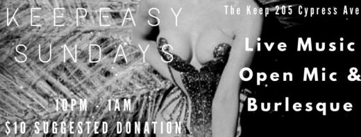 For some, Sunday is a day of rest. For others, it’s a a chance to squeeze in one more day of debauchery before the Monday drudgery hits you like a bag of rocks. If you fall more into the latter camp, Keepeasy Sundays at Ridgewood bar The Keep is the place for you. Part burlesque show with games, part live music spectacular, part open mic night, this weekly affair seems to have something for everyone. Providing hosting duties for the night, as per usual, are burlesque performers Rara Darling and Midnight Moon, with a special guest for tonight in the form of performer Lucy Buttons. Whether you’re there to take in a show or put one on yourself, you’ll find a way to be entertained.