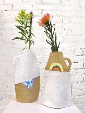 Not everyone owns a vase. When I got flowers recently, I put them in this weird long St. Germain liqueur-branded container an old subletter left in my apartment years ago. But for those who have their home life together more than I do, it’s presumably nice to have a good-looking vase laying around. Ceramicist Alison Owen knows this well, as the vase is the central facet to her aptly-named solo exhibition, Daily Vase. She’s created some form of vase every day in 2018, interpreting the prompt creatively—some works are vases on canvas, while others are more traditional sculptures. The sheer variety of work focused on one single subject will surely make you think more about vases than you ever have before.