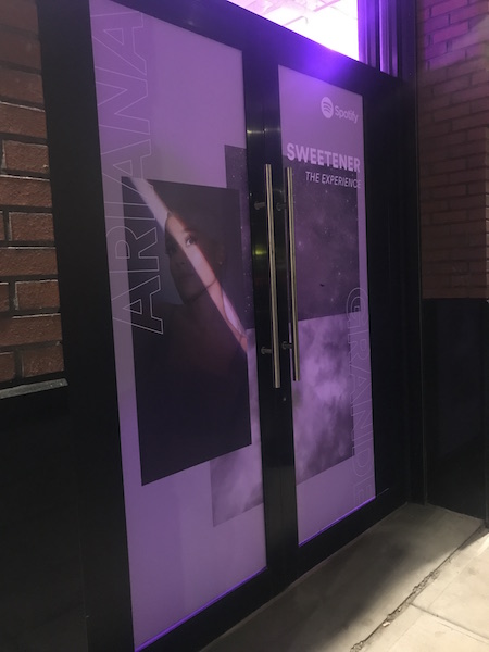 Kate Marriage, the director of artist experience for Spotify, Grande’s partner for the project, stood before a closed door in a Grande-approved outfit: a bright floral jumper with equally bright heels and perfectly coiffed hair. She opened the door, revealing a dark tunnel with yet another pink light at the end. Fans hurried through, remarking at the beauty of the makeshift stars on the ceiling. “Obviously, this is ‘The Light is Coming,’” Kate smirked, as few peeled their eyes away from the ceiling to nod in understanding.