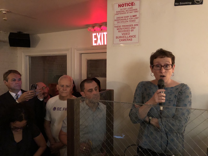 The final speaker of the night was Eisenbach. He is the founder of Friends of the SBJSA, which he classifies as a coalition supporting the bill, though when asked earlier this week, he declined to name members of the coalition. Eisenbach campaigned for NYC Public Advocate in 2017, losing to Tish James. Now that James will likely be vacating the role for the post of NY Attorney General, he is campaigning again, as the button on his lapel helpfully noted.