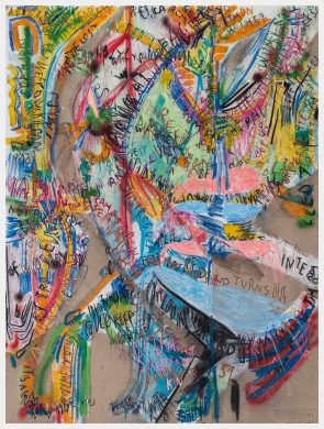 For better or for worse, we can all agree something there’s no shortage of in today’s world is information. From partisan pundits to much-maligned “fake news” to legitimate educational content, it’s hard to tune it all out completely, even if you try. This is evident in the work of painter Despina Stokou. What initially looks like colorful abstract work is revealed to be artistic, chaotic renderings of words: Twitter posts, political commentary, hashtags, and the multifaceted feelings of people living in America today. But of course, some of these painted-on phrases have become hard to understand, quite literally erased by broad strokes of white. Sound familiar?