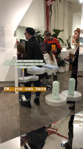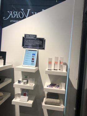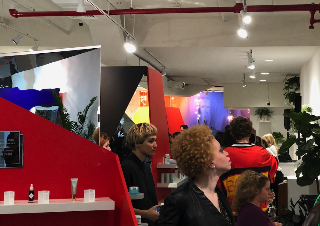 The store features many brands not carried in normal places– like Scent Bird’s package of three perfumes, or Rich Bitch moisturizer– so it’s a good excuse to sample different things and buy something your roommates won’t have. Like Glossier’s storefront in Chinatown, there are a bunch of stations with face creams, moisturizers, zit patches, and other products to try. iPads allow you to click on The Strategist’s product reviews while you do so.