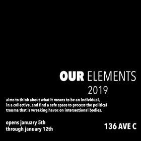A slew of artists, genres, and topics converge in the second-ever Our Elements, an exhibition of queer and feminists artists who use their work to delve into the topic of existing, whether as a group or as an individual, in a society that is “wreaking havoc on intersectional bodies.” Many pieces of art have already been made on this general topic, but it’s unfortunately one that has yet to stop being relevant, so there will always be fresh horrors to derive inspiration from. Participating artists include DJ Tikka Masala, choreographer and visual artist Naomi Elena Ramirez, and Courtney Alexander, an artist who designed a tarot deck featuring imagery from the Black Diaspora.