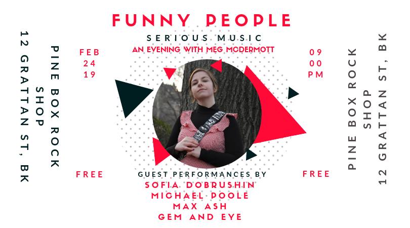 Being a performer in a big city can sometimes feel limiting—when people know you’re good at doing one thing, it’s all they tend to expect from you. But what if you have other performance interests that are just sitting there in the corners of your brain, gathering dust and wishing to be unleashed? Musician and comedian Meg McDermott has provided a platform for artists to explore just that with Funny People, Serious Music, a show spotlighting comedians who also perform music. Whether they’re stand-ups who write songs on the side or comedy musicians that don’t want to exclusively sing in a joking way, the lineup (Sofia Dobrushin, Michael Poole, Gem and Eye, and Max Ash) will be bringing their most passionately solemn tunes to the Pine Box stage. Which is fitting, as it used to be a coffin factory.