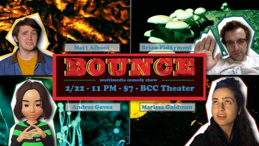 Most comedy consists of someone on a stage with a microphone talking to an audience. There usually aren’t props or anything like that. That will all change at Bounce, a multimedia comedy show that features a heck of a lot more than simple standup. Matt Albani, Marissa Goldman, Andrés Govea, and Brian Fiddyment will be taking the stage in this late-night endeavor, and they’ll be doing their darnedest to stretch the boundaries of what comedy can truly encompass. Expect video, audio, animation, 3D media, and whatever else their weird jokester brains can cook up.