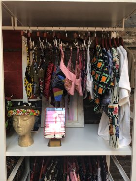 The clothing– sold at Artists and Fleas in Williamsburg some Saturdays– is made to order, and custom fittings are part of the practice. Whyte says the pricing reflects the quality, which can’t be matched in chain stores. Skirts start at $125, crop tops range from $85 to $125,and headbands are $30. More recently, home decor has been added to brand, with pillow cases starting at $45.