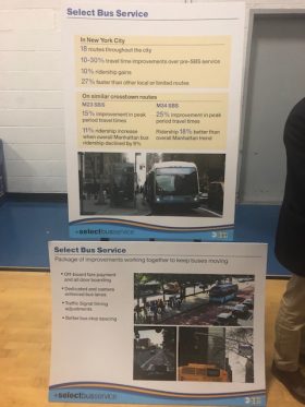 Susan Bowen, an East Village resident, was among the local residents who wore “NO SBS” shirts at the meeting. “You know, I’m a senior but I’m fairly mobile,” she said. “I can walk a couple extra blocks if the 1st Ave stop is no longer around. But a lot of other people can’t do that. And with lack of accessibility on the subway, for some people the bus is our best way to get around the city.”