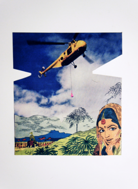 Born in Guyana and of Indian descent, Suchitra Mattai follows the stories of women in the Indian diaspora, studying the work women do to create a sense of home away from home by placing portraits of women against colorful, archived backgrounds.