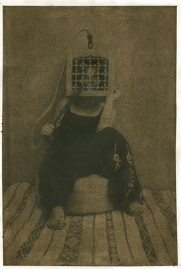 Iraq-born Sama Alshaibi grapples with the aftermath of war and exile and reimagines the work of women through her gumoil-on-cotton prints of women carrying water, milk, or crowns on their heads.