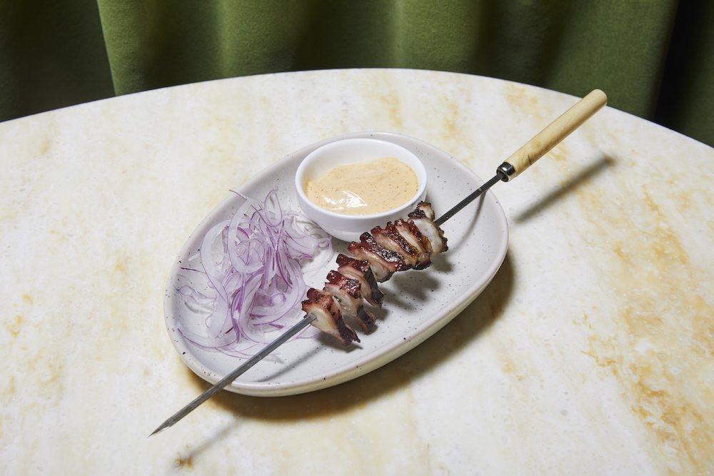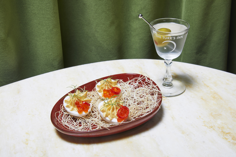 The Turk’s Inn isn’t just an aesthetic feast; you can eat actual food there, too. Executive chef Alberto Carballo, who has previously cooked at Boqueria and Claudette, will be serving up dishes like lamb meatballs with yogurt and mint, moussaka, pork chops, and olive and feta salad.