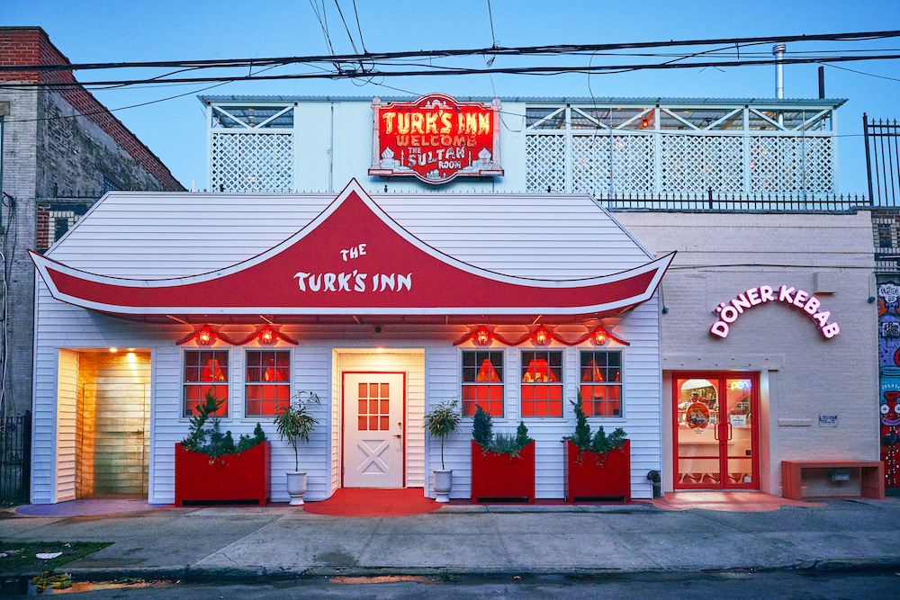 Near the Jefferson L in Bushwick, you can find plenty of big and/or glitzy bars and venues. There’s the ubiquitous House of Yes, burlesque troupe Company XIV’s new-ish theater, party spot Lot 45, and scores of other watering holes of every shape and size. But until now, there hasn’t been anything quite like The Turk’s Inn. Opening this Thursday, the two-level supper club, which also encompasses a separate music venue and kebab shop, is a replica of a shuttered Wisconsin institution of the same name.