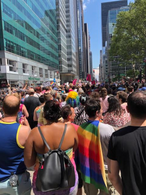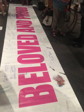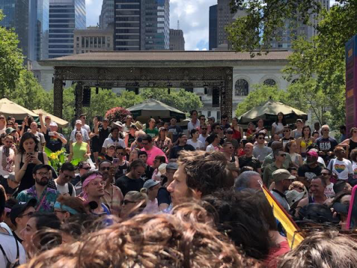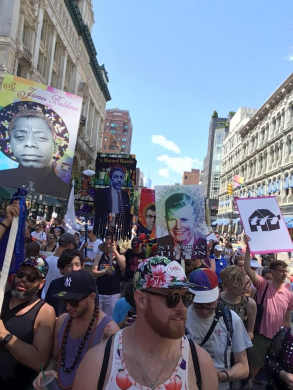That message was broad and inclusive. The constellation of issues represented in the hymnals, as well as on the sea of vibrant hand-made signs, was extensive: queer inclusivity, Black Lives Matter, reproductive and environmental justice, gun control, immigration policy. “50 years after Stonewall, I wanted to think about queer liberation as part of a larger social justice movement,” said Chris Bunting, who had no stated plans to attend to the larger Pride parade later in the day. “The queer community is in alliance with other groups that are oppressed within the U.S.”