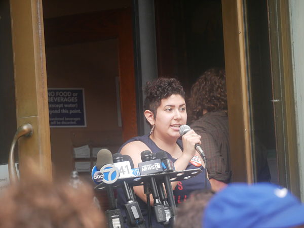 “My family did not come here to see members of my community be put in cages,” said Drea Herrera of the New York Civil Liberties Union. Drea was born to Mexican and Syrian immigrants. “To live in fear of being detained, reported or killed.”