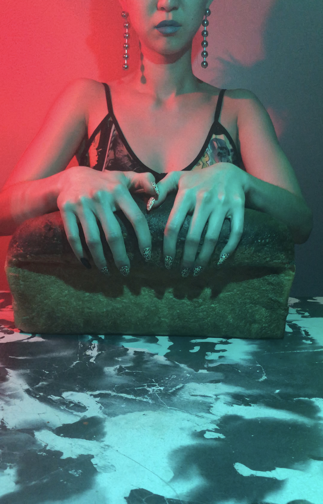 The erotica inherent in her videos is not lost on Molly Surno, the art director of Bushwick venue Elsewhere. The nightclub commissioned Bread Face to work on a series of installations for their in-house art program, including a bathroom stall covered entirely in mirror, then lit and soundtracked. “So when you are peeing, or whatever you are doing in the bathroom stall, you are participating in her installation,” Surno described. “It’s very mysterious, it’s sexy.”