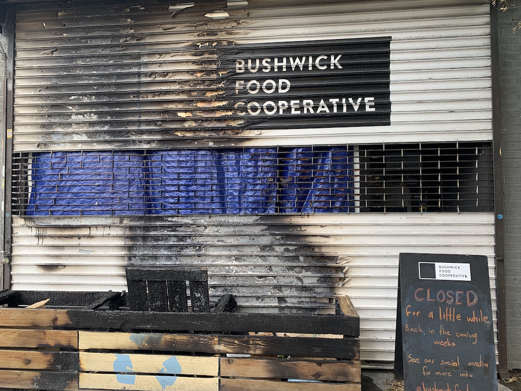 A fire outside the beloved Bushwick Food Coop burst the shop’s storefront window in the early morning of July 3. After shattering the glass, the heat seeped into the building and activated overhead sprinklers, causing thousands of dollars worth of smoke and water damage. Three months after the incident, Bushwick Food Coop is still trying to reopen, but the process is slow and painful. Having raised just $11,000 of its $60,000 fundraising goal, there’s still a long way to go.