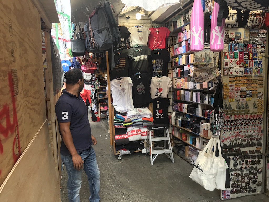 Samir Ghosh, owner of a gift shop at 210 Canal, can’t stand the feast. “No more customers,” he said. “I lose my mind.” His small shop is laden with bejeweled t-shirts, shiny magnets and colorful perfumes, all flooded with fluorescent light to attract as many customers as possible. This is all in vain as he sits fiddling with coins in his storefront, completely hidden from the street behind the wooden walls of a zeppole stand. Since most of his sales depend on foot traffic, it’s bad for business when no one can see him from the middle of the street.