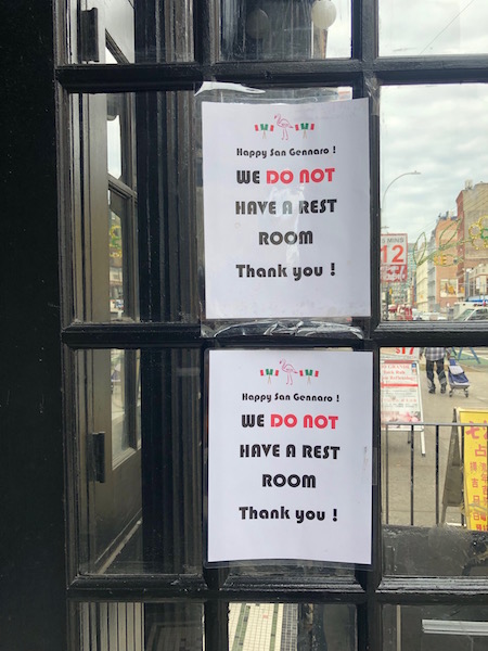 Ghosh and other business owners say many people come up to them trying to use the bathroom. Baz Bagel, located on Grand Street right off of Mulberry, posted a sign on the front door saying they don’t have one. Phillip Manapat, the store manager of the bagel shop, says service and business is disrupted when people come in to just use the restroom.