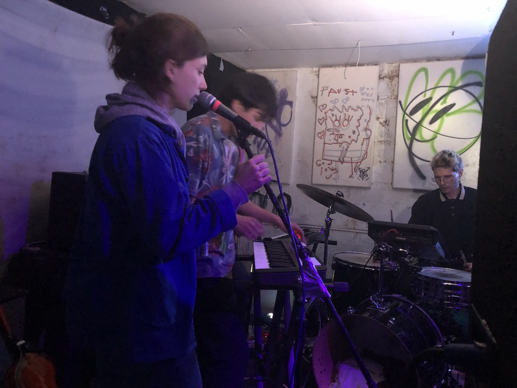 Friday night, a friend ushered me down from the roof with a text: “Seriously get everyone down here. It’s so good. It’s very stereolab.” It turns out it was the 14-piece chamber-pop band Tredici Bacci, who led the room in a sing-along to a simple 4/4 beat that went, “I love The Glove / It’s a place I love / The Glove was sent from heaven above / The venue version of a great, big hug / I love The Glove.” Posturing is a de facto DIY attitude, but most put aside their cool remove and joined in. My hands were pruned with perspiration and lord knows I had had my share of spiked seltzers, yet days after the show, I continued to chant this catechism.