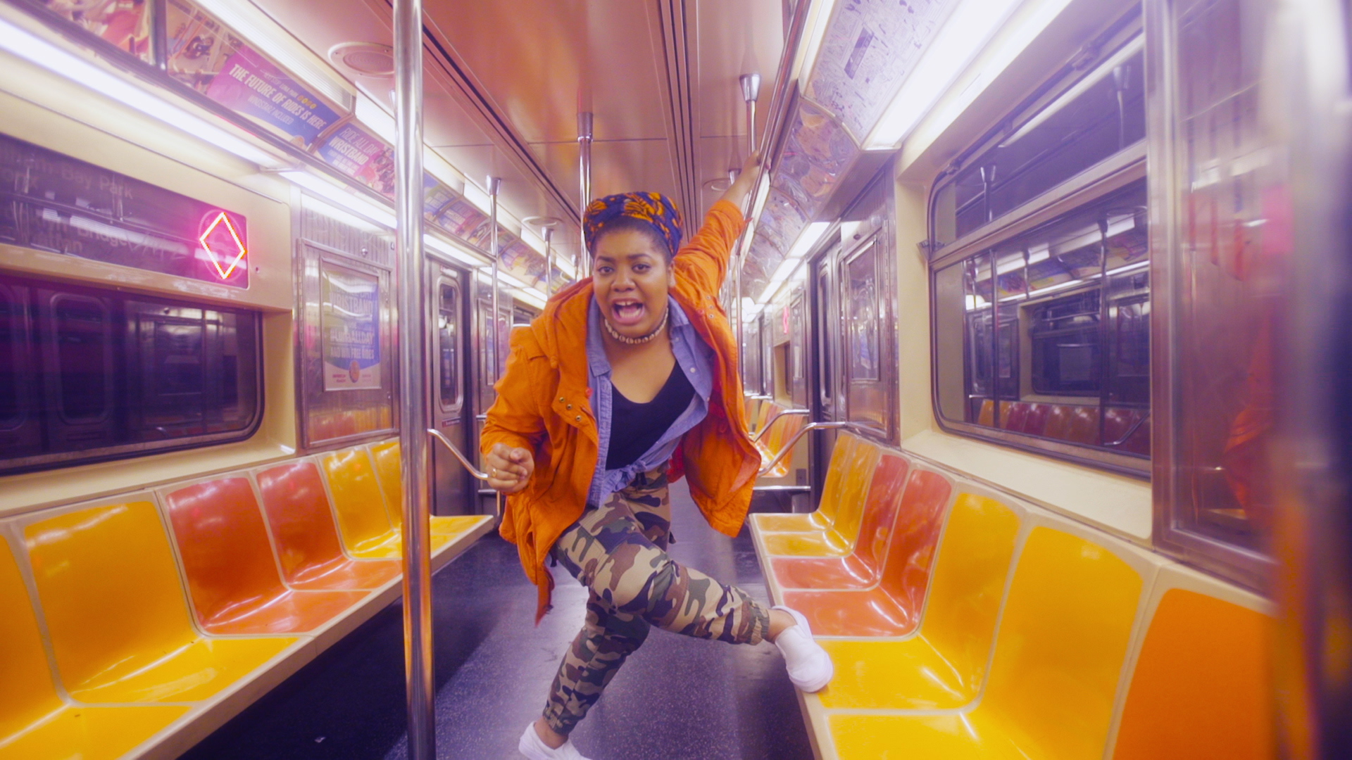 Powers’s background is in editing sports movies; he found himself in new territory here, attempting to bring such “visceral and vulnerable” experiences to life on film. His audiences, of course, would be separated from the poets by time, and by a distancing screen. “Filming it straight really doesn’t do the experience justice,” he said, of the immediacy of a slam show. “Even with multiple cameras, it was never gonna capture being there.” He, along with editors David Lieberman and Nathan Punwar, decided to film the performance of certain poems almost like music videos—in staged settings, with direct address. The results are striking, stylized moments of narrative break, sprinkled throughout Don’t Be Nice like poetic punctuation. August’s octopus poem is presented in a series of cut-together scenes in the subway: in a car, on the platform, in front of a mosaic mural of sea creatures. Changing environs, Powers discovered, can help filmed text to feel dynamic. Vibrant surroundings—not to mention an acknowledged camera—can give a poet lots to play with.