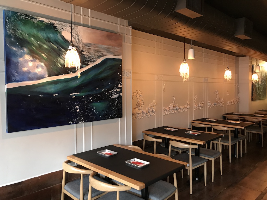 The decor here has a more contemporary take on the nautical themes of the uptown original. Instead of rustic wooden walls and buoys to mimic the feel of a ship, the East Village restaurant has shell art, a clean-looking bar, and paintings. Okay, maybe there’s one life preserver…and a harpoon too.