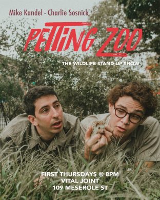 Some might say performers and animals have quite a bit in common, what with their primal energy and general lack of regard for doing anything other than what they’ve planned on doing, like perform or eat grass. These two similar species will be converging tonight in a very special show, and we don’t mean that metaphorically. Petting Zoo features not only jokes by familiar comedic faces like Dan Licata (who now writes for SNL), Charlie Bardey, Maggie Crane, and Mariah Oxley, an actual professional animal handler will be in appearance to show you a gaggle of furry, scaly, feathered, and otherwise non-human friends.
