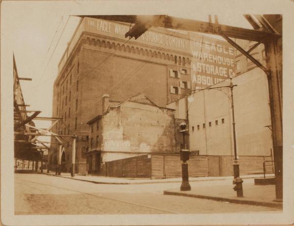 Alongside this economic sprawl, the Eagle was also setting its sights on more land. The publication chose to leave the Fulton Street offices and relocate to a new headquarters at Washington Street and Johnson Street in 1890. But the original building wasn’t lost. Two former Eagle executives— William V. Hester and William M. Van Anden, nephew of former owner Isaac Van Anden— helped purchase most of the land around the original pressroom in 1882, demolishing part of the remaining buildings to make way for its new purpose: a warehouse and storage facility operating under the shadow of the brand new Brooklyn Bridge.