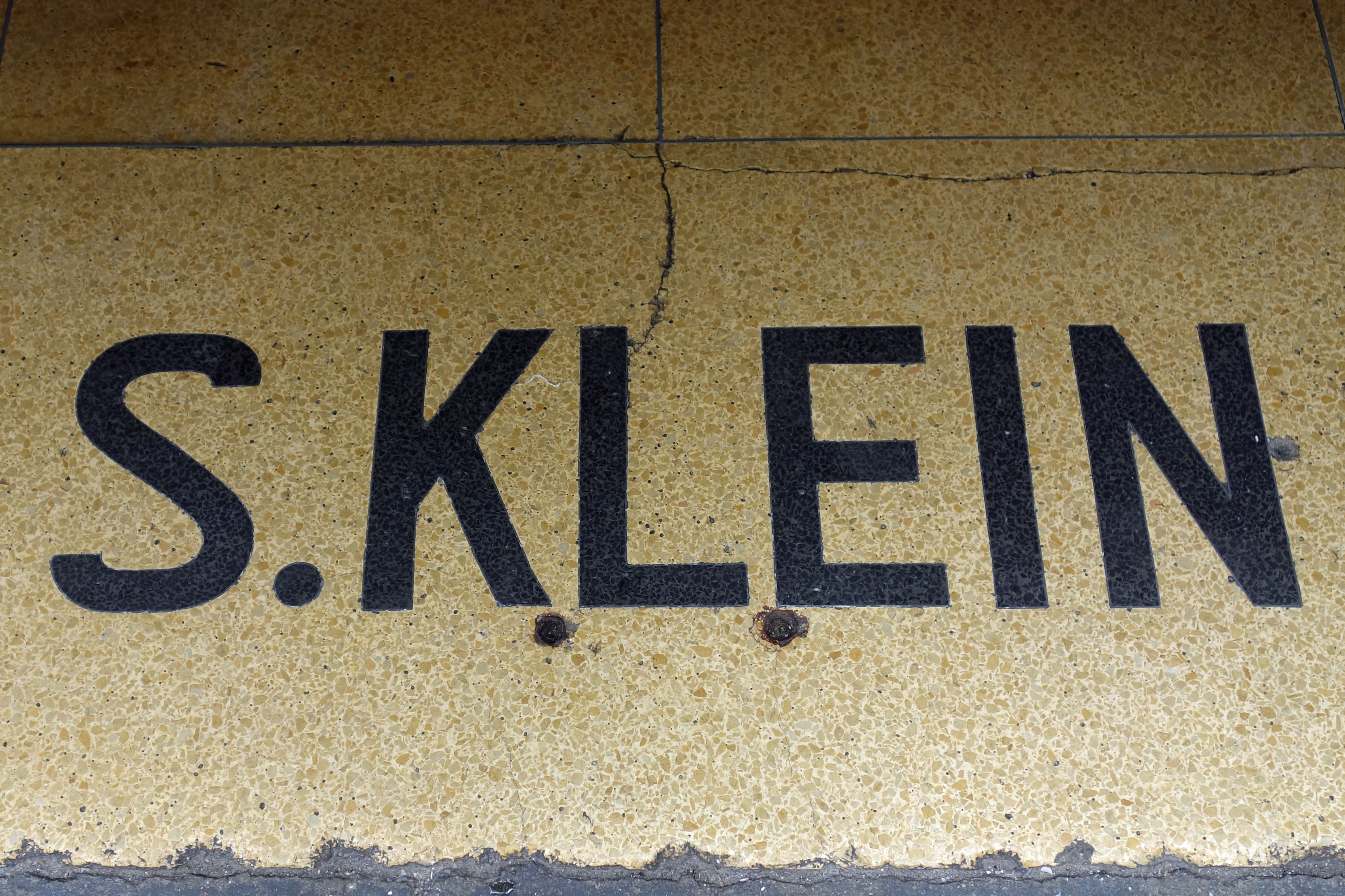 The flagship of the S. Klein department store chain was open on Union Square from about 1912–1975. S. Klein was founded in 1905 and had other stores in New York and New Jersey. This ghost sign, embedded in the floor at the entrance of the Pig & Khao restaurant, may be the last evidence of the stores in Manhattan.