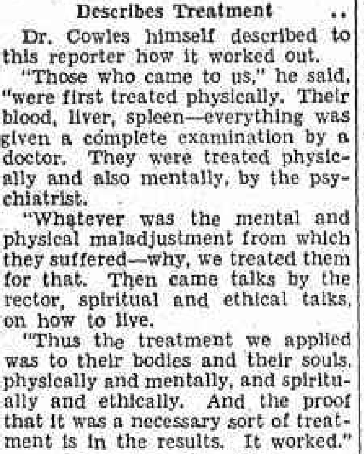 But Guthrie did not stop. In 1923, he proudly launched the Body and Soul Clinic alongside Dr. Edward S. Cowles, a psychiatrist. Touted as a space for all types of healing through spiritual guidance and meditation, the clinic, which was held three times a week, welcomed thousands. The Brooklyn Daily Eagle detailed the treatments on July 31, 1932: