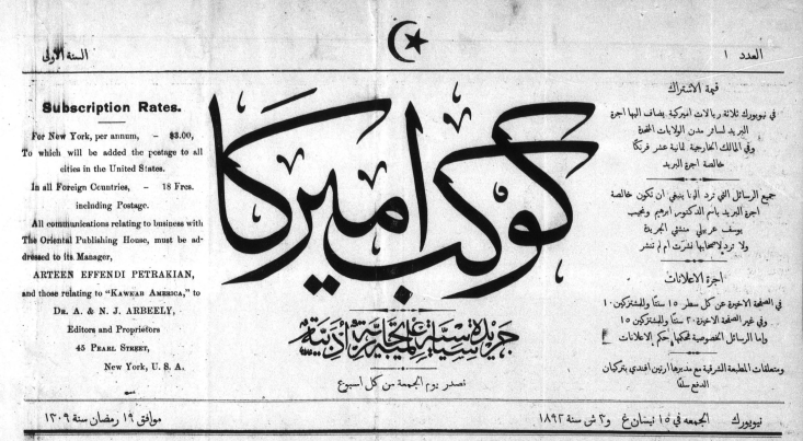 By the time Kawkab launched, the Arbeely brothers had been in the United States for nearly 15 years. They arrived in 1878 with their family to a wave of press coverage of the “first Syrian immigrant family” in the United States. Whether this was true or not, it did spark a fascination with the Arbeelys. The family moved around—to Tennessee, Texas, and beyond—while Nageeb Arbeely even had a short-lived and ill-fated appointment in 1885 as US Consul to Jerusalem (the Ottoman Empire refused to accept his credentials as US Consul because it still considered him an Ottoman citizen).