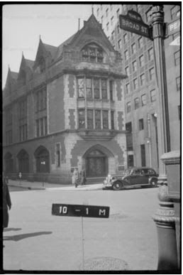From 1908 to 1911, according to city records, Irving T. and Bella B. Bush bought up the lots comprising 39-53 Pearl Street. After those lots were consolidated into a single, new lot 1 and sold again, the existing brick structures were torn down in 1961, according to the Office for Metropolitan History. Work began on the New York Clearing House Building, a squat, two-story pizza slice of an office building, measuring 15,834 square feet and completed in February 1963.